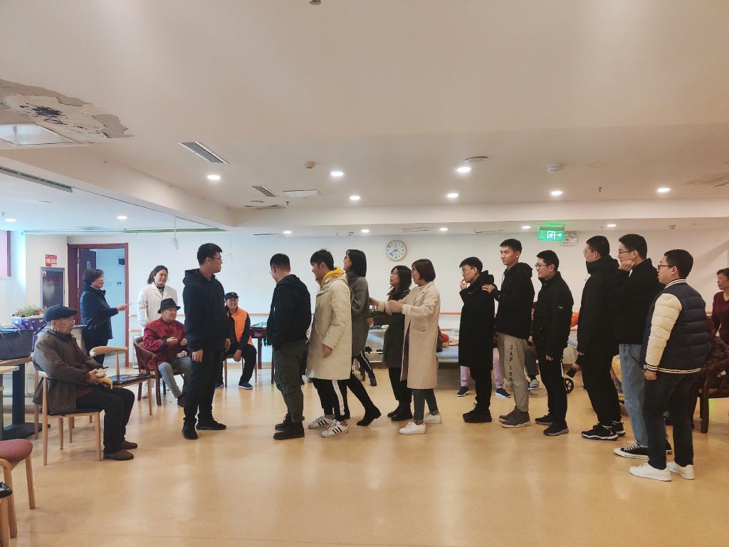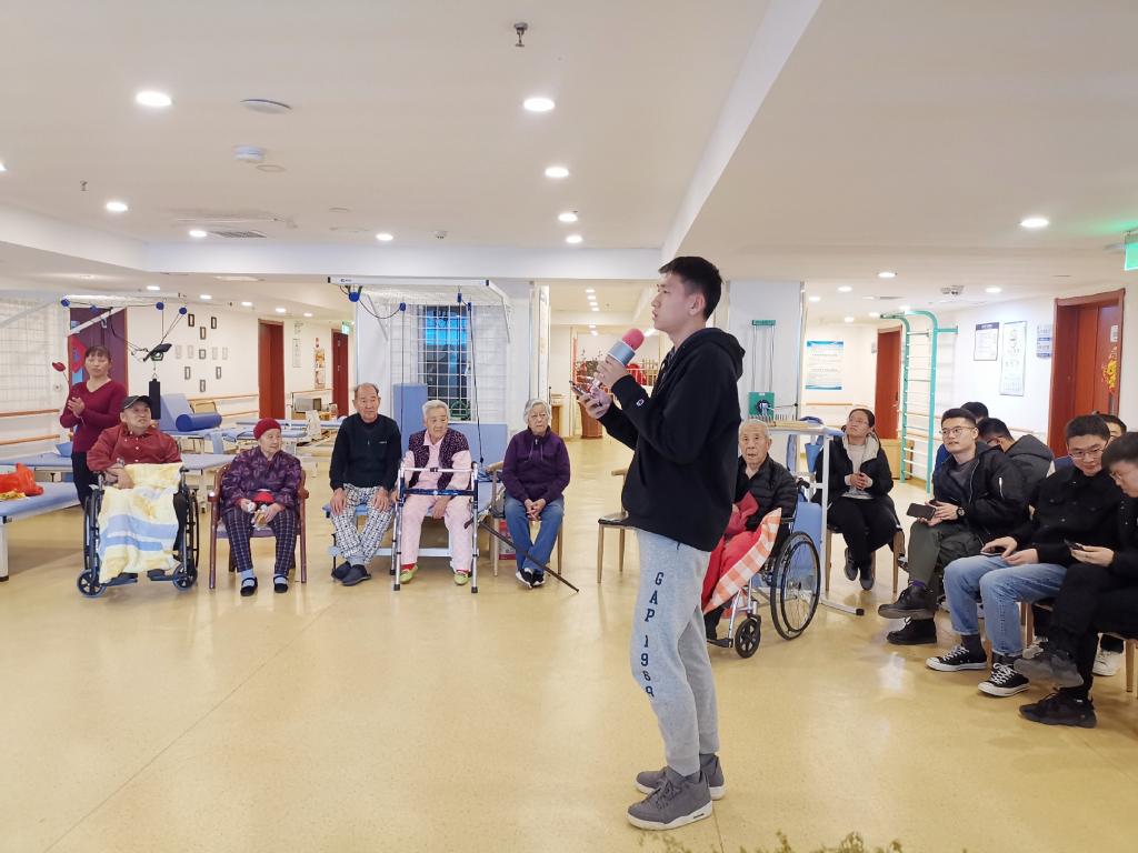 在研究生部刘莎莎老师的主持下,同学们首先向老人简单做了自我介绍。随后,大家边与老人聊天边玩起了“击鼓传花”的游戏。大家都积极参与,为给老人带来欢乐,倾情献上了自己最拿手的节目,送出自己最真挚的祝福。现场的老人和工作人员深受感染,也纷纷上台互动,表达对同学们的衷心感谢。活动在载歌载舞的欢快氛围中圆满结束,老人们的脸上都洋溢着喜悦的笑容。