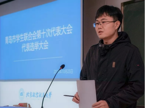 随后,三名候选人陆续上台进行竞选发言,全部候选人发言结束之后,由在场所有同学进行无记名投票,研究生会副主席李伟康、一班文体委员刘浩然和二班文体委员夏秋阳进行现场监票、计票和唱票。经选举,北青院第一届研究生会副主席白中扬、挂职锻炼研究生赵春阳成功当选。会议结束后,北青院立即对新当选的青岛市学生联合会第十次代表大会正式代表进行了公示。