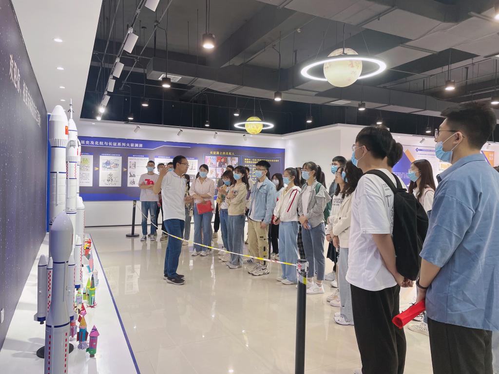 在航空航天STEAM教育基地,深入学习我国载人航天、北斗导航领域的最新成果,追寻“天问一号”的火星探测之路,体悟“北航精神”、“两弹一星”精神和“载人航天精神”的核心内涵。